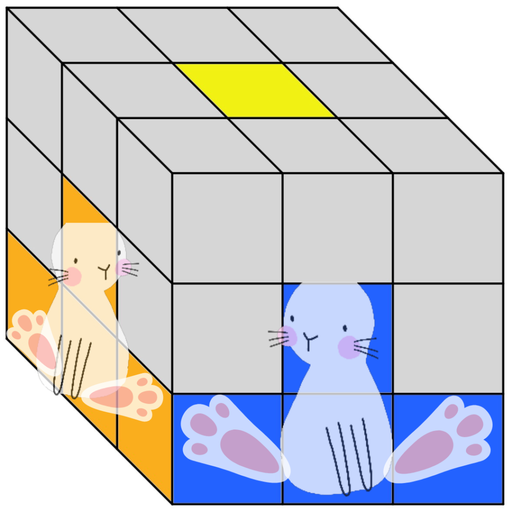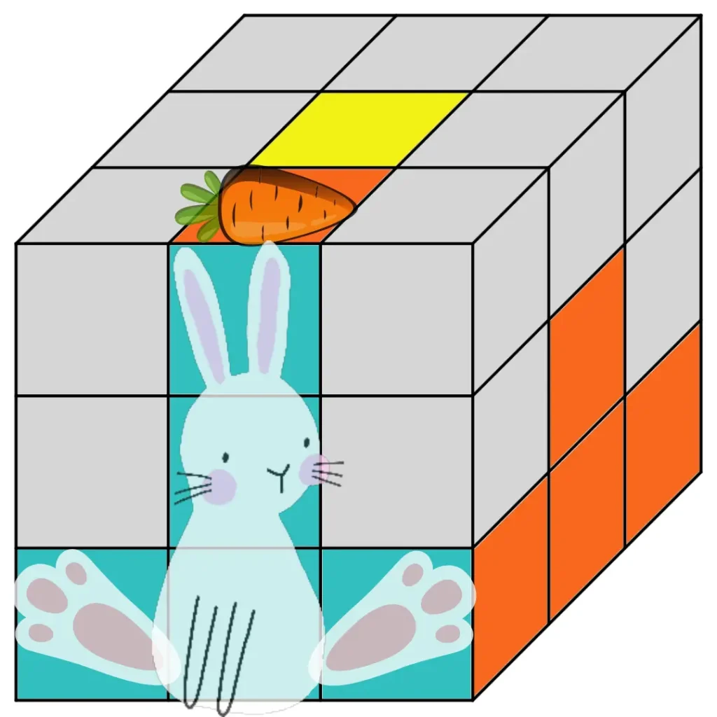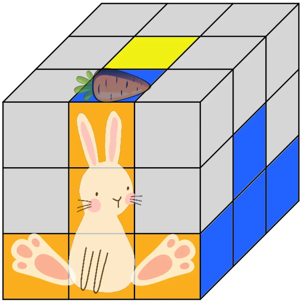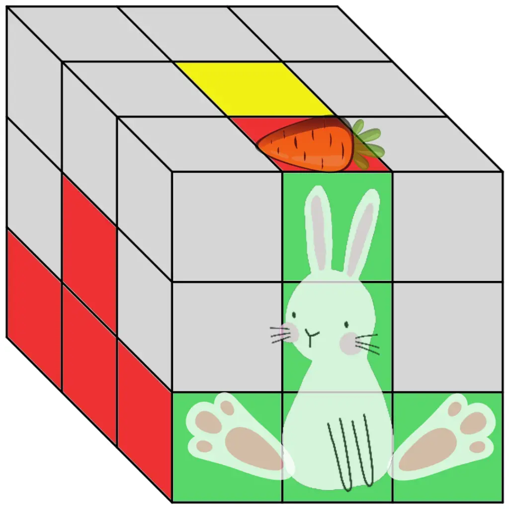 Goal: Complete the middle layer of the Rubik’s Cube by finding the Delivery Bunnies.